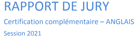 RAPPORT DE JURY 2021- CERTIFICATION COMPLÉMENTAIRE EN LANGUE ANGLAISE