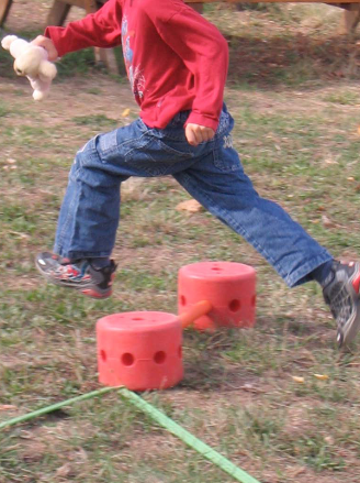 •    Explorer différents trajets (en marchant, en sautillant, en courant…) dans un milieu aménagé à l’aide de matériels divers (lattes, cordes à franchir en sautant, briquettes ou petites haies à enjamber…), servant de repères ou d’obstacles,
