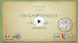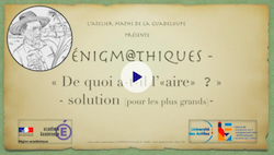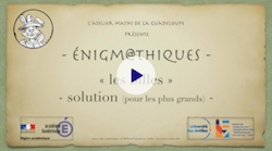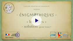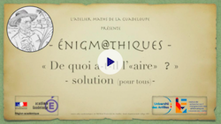 L'Atelier Maths de l'académie de Guadeloupe en partenariat avec l'Institut de Recherche sur l'Enseignement des Mathématiques (IREM) de l'Université des Antilles vous propose les capsules vidéos "énigm@thiques". Elles vous permettront de chercher, jouer en famille, d'essayer de résoudre les énigmes du Rallye Mathématiques de l'IREM.