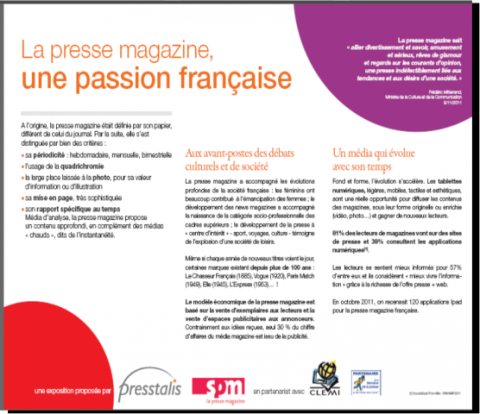Cette exposition propose de découvrir la presse magazine : son histoire, son impact culturel et surtout la passion que lui voue le lectorat français.