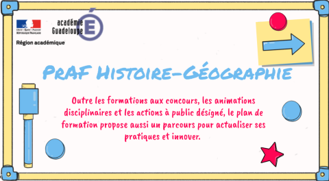L’EAFC (École académique de la Formation Continue) de l'académie de Guadeloupe vous accompagne dans votre actualisation des connaissances et des pratiques disciplinaires en Histoire-Géographie pour l'année 2023-2024.