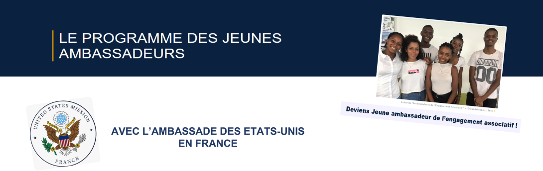 Le programme Jeunes Ambassadeurs de l’Engagement Associatif est proposé par l’Ambassade des États-Unis d’Amérique en France.