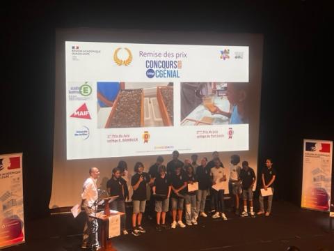 Remise du 2e prix à la Finale Académique du concours Cgénial aux élèves du collège de Port-Louis et à leur enseignante, Madame DONERO, professeur de physique chimie.