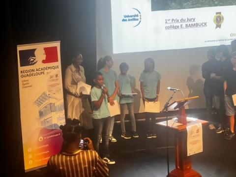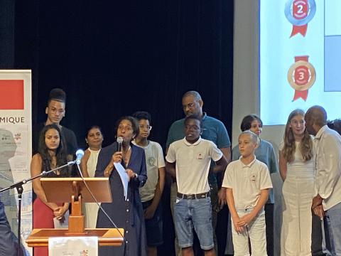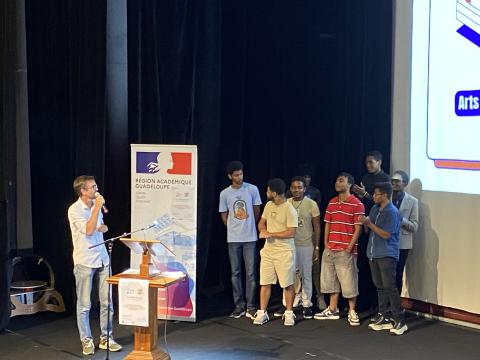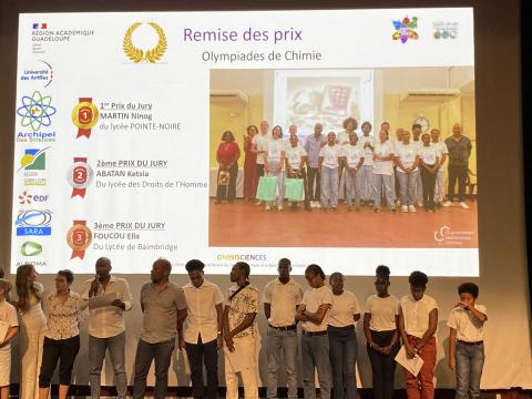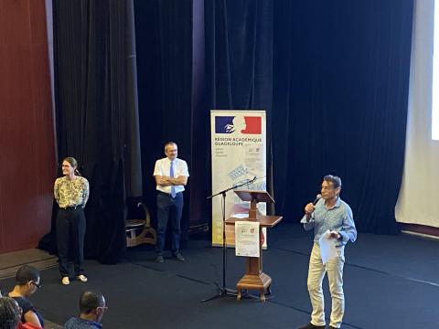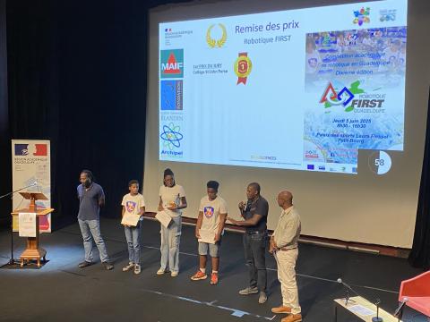 Remise des prix des Olympiades de Sciences de l'ingénieur aux équipes du Lycée Charles COEFFIN de Baie-Mahault et du Lycée Raoul-Georges NICOLO de Basse-Terre qui remportent les 3 premiers prix en Première et Terminale.