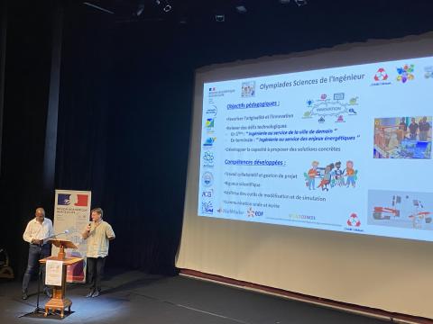 Présentation des Olympiades de Sciences de l'Ingénieur par les coordonnateurs académiques, M. SHEIKBOUDHOU et M. PARAT.