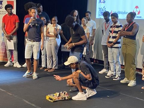 Prix spécial EDF aux Olympiades de Sciences de l'ingénieur aux élèves du Lycée Faustin FLERET de Morne-à-l'eau pour leur robot.