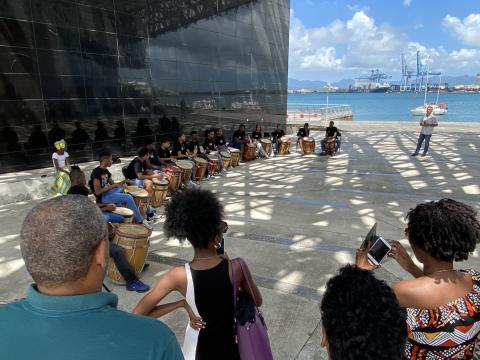 La pause en musique avec les élèves du collège Ramé DECORBIN de Douville Ste Anne.