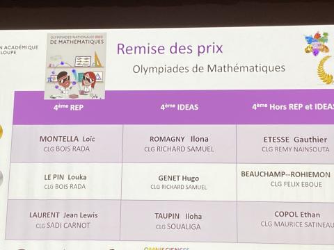 Remise des prix des Olympiades de Mathématiques par Mme MILLION-ROUSSEAU, IA-IPR de Mathématiques.
