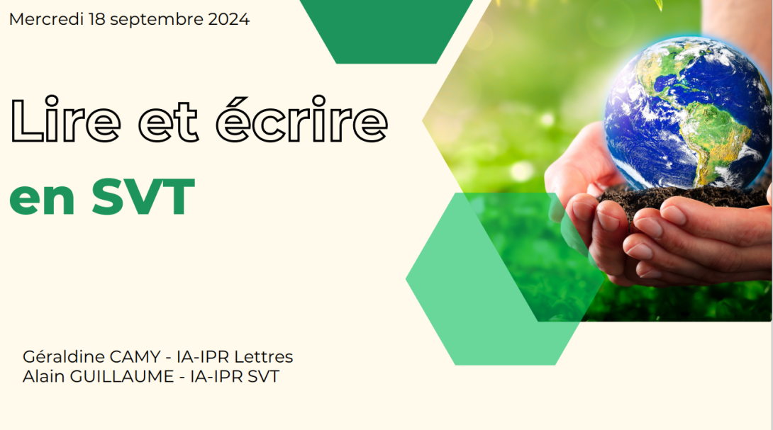 Diaporama de la présentation "Lire et écrire en SVT" de Mme CAMY, IA IPR de Lettres et M. GUILLAUME IA IPR de SVT