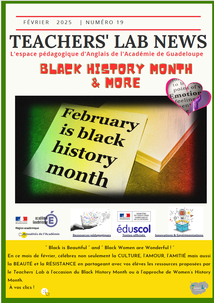 En ce mois de février, célébrez non seulement la CULTURE, l’AMOUR, l’AMITIÉ mais aussi la BEAUTÉ et la RÉSISTANCE en partageant avec vos élèves les ressources proposées par le Teachers’ Lab à l’occasion du Black History Month ou à l’approche de Women’s History Month.
