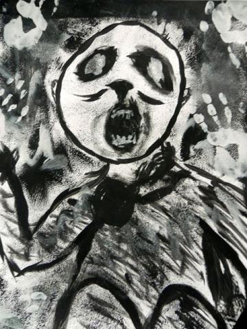 Comment a-ton réussi a donné le sentiment d'oppression ? Quel est le positionnement du corps dans l'espace du tableau ? Comment a-t-on tenu compte des limites du cadre ? Qu'apporte le fait de passer directement à la peinture ?