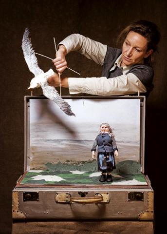 Et si le carnaval avait été inventé par une vieille marchande de crevettes de Boulogne-sur-Mer ? C'est en voulant échapper à la Grande Faucheuse que Philippine imagine et organise, avec ses amies et les femmes des marins, une grande fête costumée réunissant dans une même assemblée les riches et les pauvres… Cette « fable pour valise et marionnettes » très joliment écrite par Nicolas Ducron (auteur, metteur en scène et compositeur) réussit, dans un espace aussi réduit qu'une valise, à évoquer les bords de mer, l'iode, les embruns, le défilé chamarré, mais aussi l'effroi de Philippine face à la mort… Les décors peints, les marionnettes et les masques de Martha Roméro ne sont pas étrangers à cette belle invitation au voyage, de même que l'interprétation sensible d'Isabelle Hazaël. Françoise Sabatier-Morel