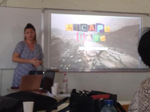 Durant les différentes sessions de formation animées par Mme Jegou, il a été possible de découvrir, d'expérimenter et de commencer à produire des supports visant à créer un "escape game" utilisable pour la pédagogie. Ce nouveau support à visée pédagogique est de plus en plus utilisé dans différentes matières afin de permettre aux élèves de tester leurs connaissances, de pouvoir aborder un cours où une matière de façon différente ou de susciter un intérêt nouveau. L'escape game peut également constituer un chef d'oeuvre, si il est produit par les élèves eux-mêmes.