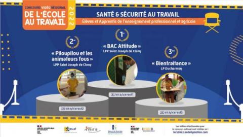 Le 20 mai 2022, lors d'une cérémonie, nous avons pu féliciter et remettre les prix aux 3 équipes gagnantes du concours vidéo régional "De l'école au travail".