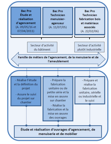 La famille de métiers de l’agencement, de la menuiserie et de l’ameublement regroupe trois baccalauréats professionnels :