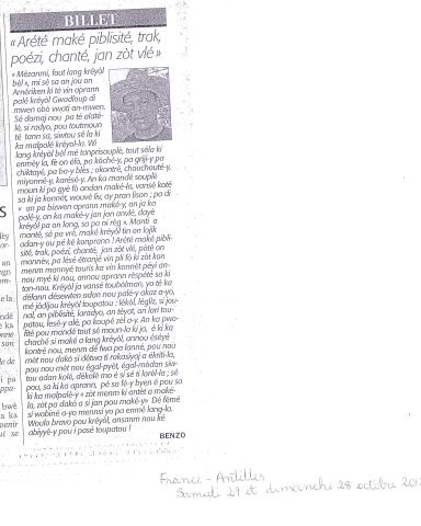 - Arété maké trak, piblisité etc, en kréyòl, Benzo in France-Antilles, 2012