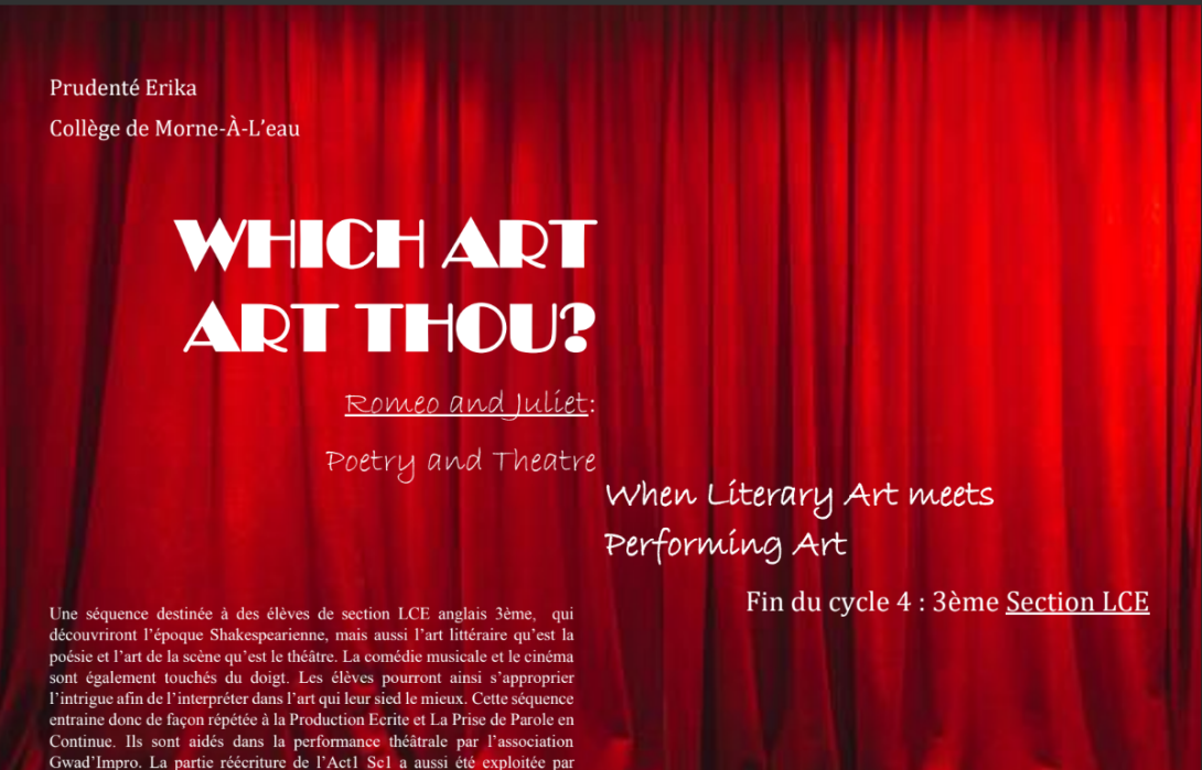 Ce document présente une séquence pédagogique sur "Roméo et Juliette". Elle permet de découvrir la vie et l'oeuvre de William Shakespeare, intégrant la poésie et le théâtre.